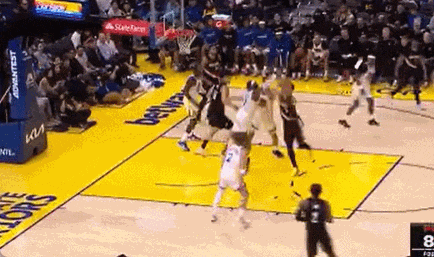杨瀚森罚球线位置持球遭遇霍福德严防死守,传球被巴特勒抢断,回防过程又被追梦格林绊倒,三巨头对付一个新秀......