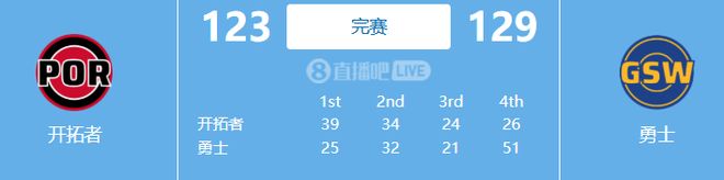 全场打完,勇士凭借末节狂轰51分实现了史诗级大逆转,129-123击败开拓者,这疯狂的得分能力令人咋舌,杨瀚森亲眼见证了NBA强队的能耐,这含金量满满的第一课希望能让他在后面的比赛有所成长。