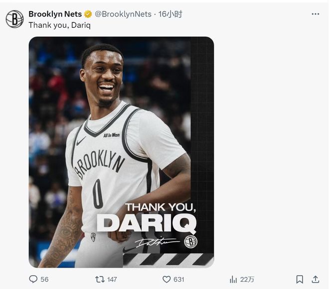 布鲁克林篮网队突然宣布裁掉2023年首轮22号秀达里克·怀特黑德,这一决定震惊了整个NBA。这位年仅21岁的前“全美第一高中生”在篮网仅仅效力两个赛季后就被放弃,篮网将支付他2