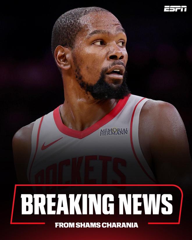 Shams:杜兰特2年9000万美元续约火箭,球员自愿降薪3000万