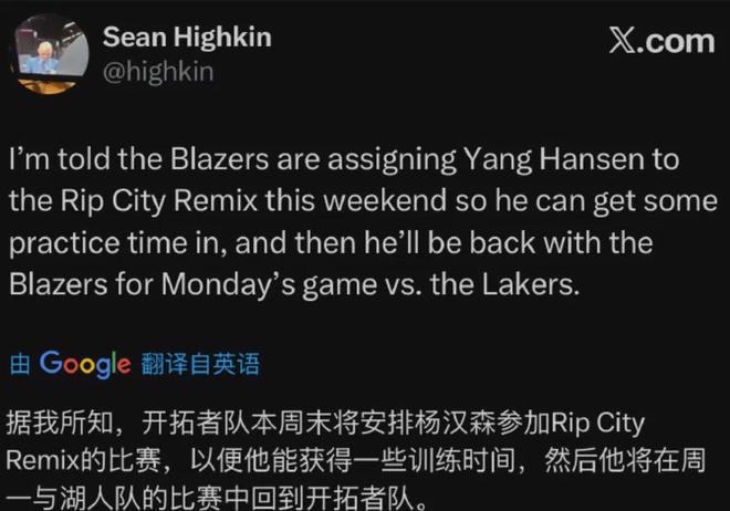 NBA方面今天传来了一个消息:开拓者宣布从NBA发展联盟召回杨瀚森,后者暂时结束了自己在撕裂之城混音队的训练。很遗憾啊,让高喊着“什么暂别开拓者,就是永别”的群体失望了,杨瀚森
