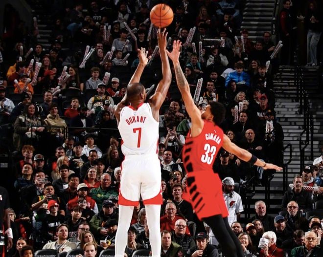 - 1月10日,火箭105比111不敌开拓者,本场比赛杜兰特狂砍30分12篮板2助攻,以总得分31435分超越张伯伦,成为NBA历史总...发表于: 01-11 08:48