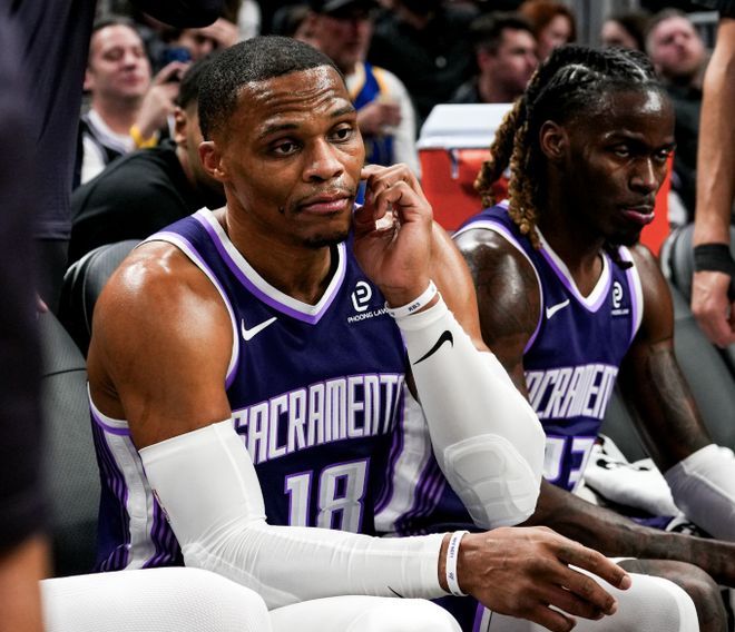 国王本赛季的表现十分糟糕,场均只能拿到109.8分,丢掉122.1分。队内球员表现也都处于下滑趋势,威少倒是成为了球队的精神支柱,场均拿到14.5分6.5篮板6.8助攻。拉文这边拿到20分,德罗赞则拿到18.5分。