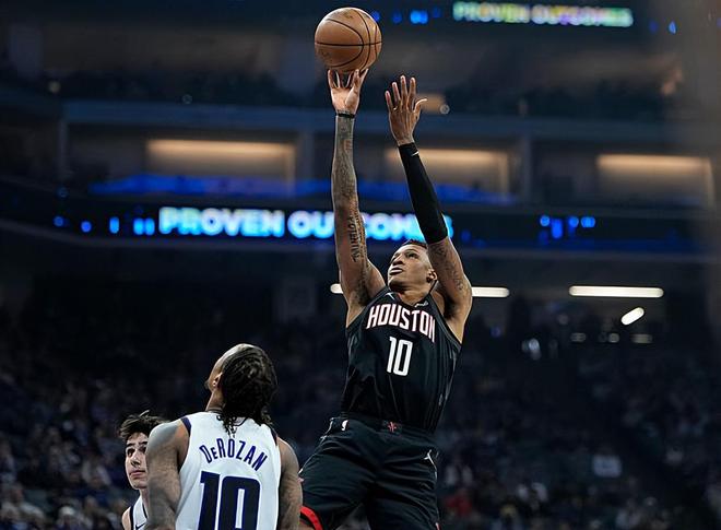 本场比赛中,火箭的先发大前锋小贾巴里-史密斯(Jabari Smith Jr.)的表现令人大跌眼镜。史密斯全场出场33分14秒,投篮13中4,三分线外3中0,罚球3中1,仅得到了9分7篮板1抢断1盖帽的数据,其中还包括了4个前场篮板,还有2次失误和1次犯规,正负值为-10。史密斯在进攻端依然是毫无手感,他的得分能力和投射能力依然是没有发挥出来,他在其他方面的作用也依然非常有限,他在场上可以说是满满的副作用。史密斯在防守端的表现同样是非常平庸的,完全看不出他具备出色的个人防守能力。史密斯的出场时间相当充裕,但是我们完全看不到他在场上的作用和价值,可以说是一名没有任何特点的球员。攻也攻不进去,守也守不住,那史密斯的作用当然也就非常有限了。