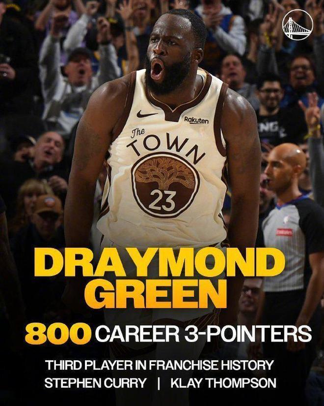 追梦达成生涯800记三分里程碑,成为勇士队史第3人,前两位是库里与克莱。