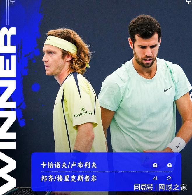 男双赛场:在半决赛一场较量中,俄罗斯双雄卡恰诺夫/卢布列夫以6-4 6-2战胜邦齐/格里克斯普尔,跻身决赛。