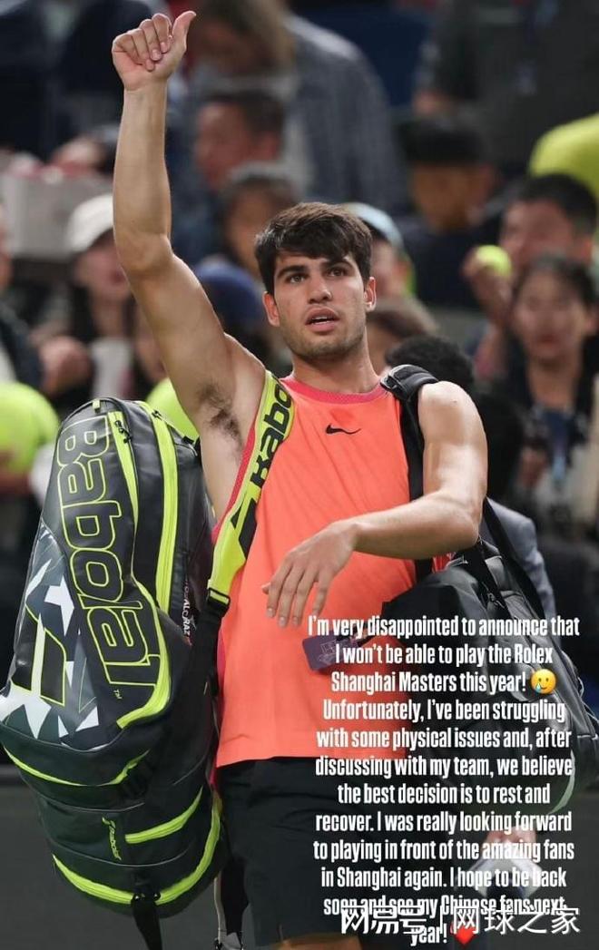 令中国球迷略感遗憾的是,夺冠之后的阿尔卡拉斯在社交媒体宣布,退出即将开打的ATP1000上海大师赛。阿卡说道,“我很失望地宣布今年不能参加上海大师赛了。非常不走运,我最近有些身体上的问题,在和团队讨论协商之后,我们觉得最好的选择就是休息和康复。”“我原本很期待在不可思议的上海球迷面前打比赛,我希望可以尽快重返赛场,明年与中国球迷们再相见。”