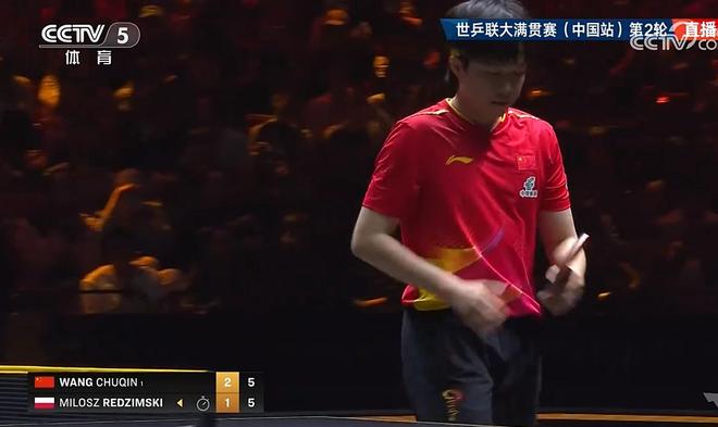 10月1日,WTT中国大满贯男单1/16决赛,王楚钦在先胜两局的情况下,被对手连追两局扳平。最终以3-2(11-7、11-4、10-12、8-11、11-8)险胜波兰的雷德齐姆斯基晋级16强,下一轮对阵塔卡vs安宰贤的胜者。