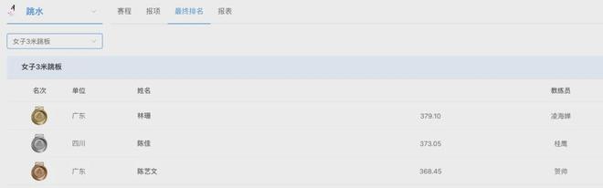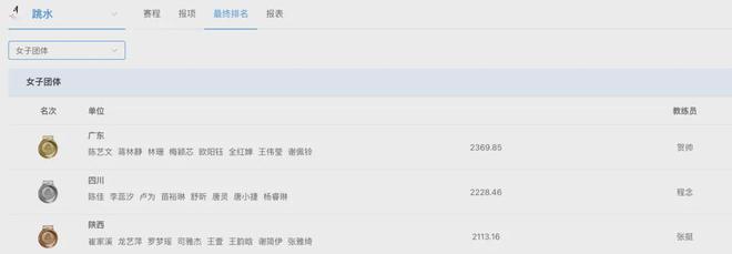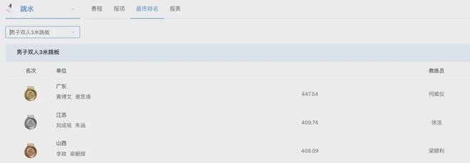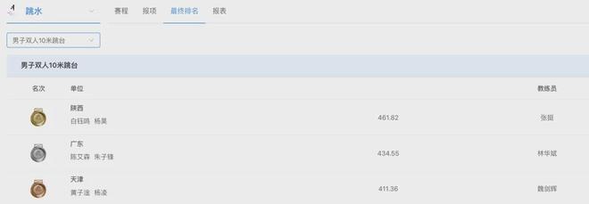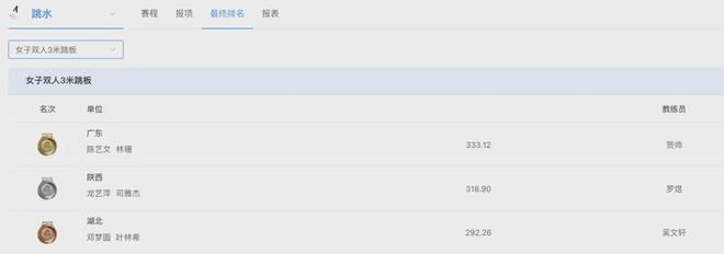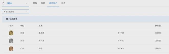 11月11日,十五运会跳水赛事圆满落幕。广东队收获6金1银2铜,成为跳水项目金牌收获最多的队伍。男子团体金牌↓↓女子团体金牌↓↓男子双人3米跳板黄博文/谢思埸金牌↓↓女子双