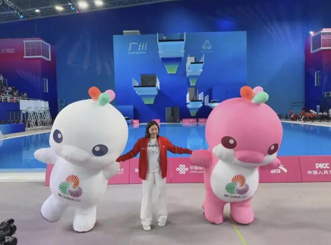 记者留意到,无论是否有自己的比赛,全红婵都会出现在观众席为队友加油打气。成熟不少的全妹,还为队友带起了娃。
