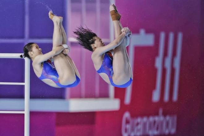 11月6日晚,十五运会跳水项目女子双人10米跳台决赛在广东举行。陈芋汐/掌敏洁夺冠。广东队全红婵/王伟莹以311.76分成绩,获得第5。