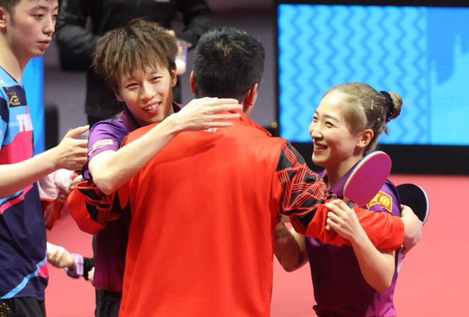 赢球之后的刘诗雯和林高远都激动挥拳庆祝。刘诗雯还和林高远、张超教练拥抱庆祝。最后,刘诗雯微笑着和现场观众们挥手致意。又美又能打的刘诗雯最后一次出现在混双赛场,收获了完美谢幕。