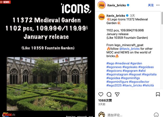 全新的世界花园系列的套装,有点类似10359 西班牙喷泉花园(Fountain Garden):