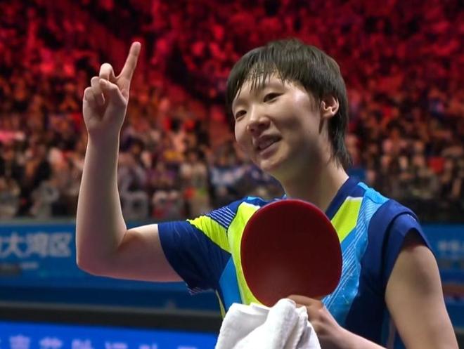一场神仙打架,孙颖莎挽救了4个赛点,但是王曼昱在第五个赛点面前把握住了机会,从而以4比2的总比分击败孙颖莎夺得2025粤港澳全运会女单冠军。王曼昱兴奋地高举双手仰天庆祝。王