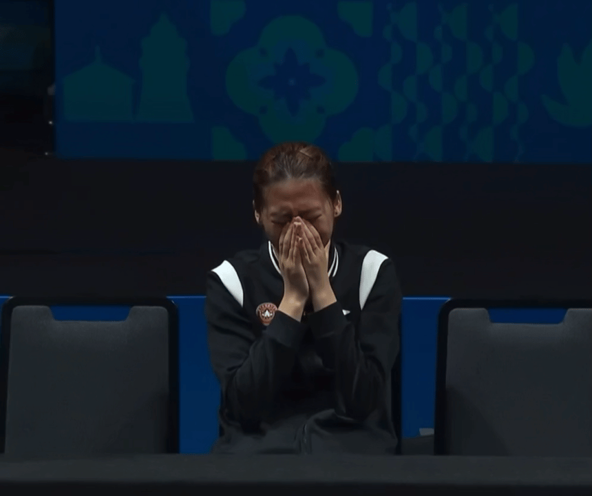 当孙铭阳拿下最后一分,坐在场边的陈熠掩面哭泣。