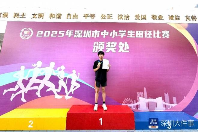 南都记者获悉,近日, 深圳市中小学生田径比赛在深圳市第七高级中学激烈上演。在初中男子400米决赛中,坪山实验学校石文建同学以50.76秒优异成绩勇夺桂冠,这一成绩是赛事近三年来