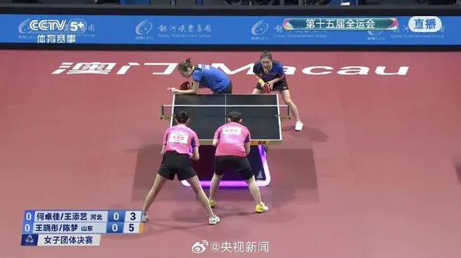 据人民日报客户端消息,11月19日,十五运会乒乓球项目在澳门银河综艺馆进行女团决赛争夺。刚刚,由王晓彤、陈梦、范思琦出阵的山东队以3∶2战胜由何卓佳、王添艺、孙颖莎上场的河