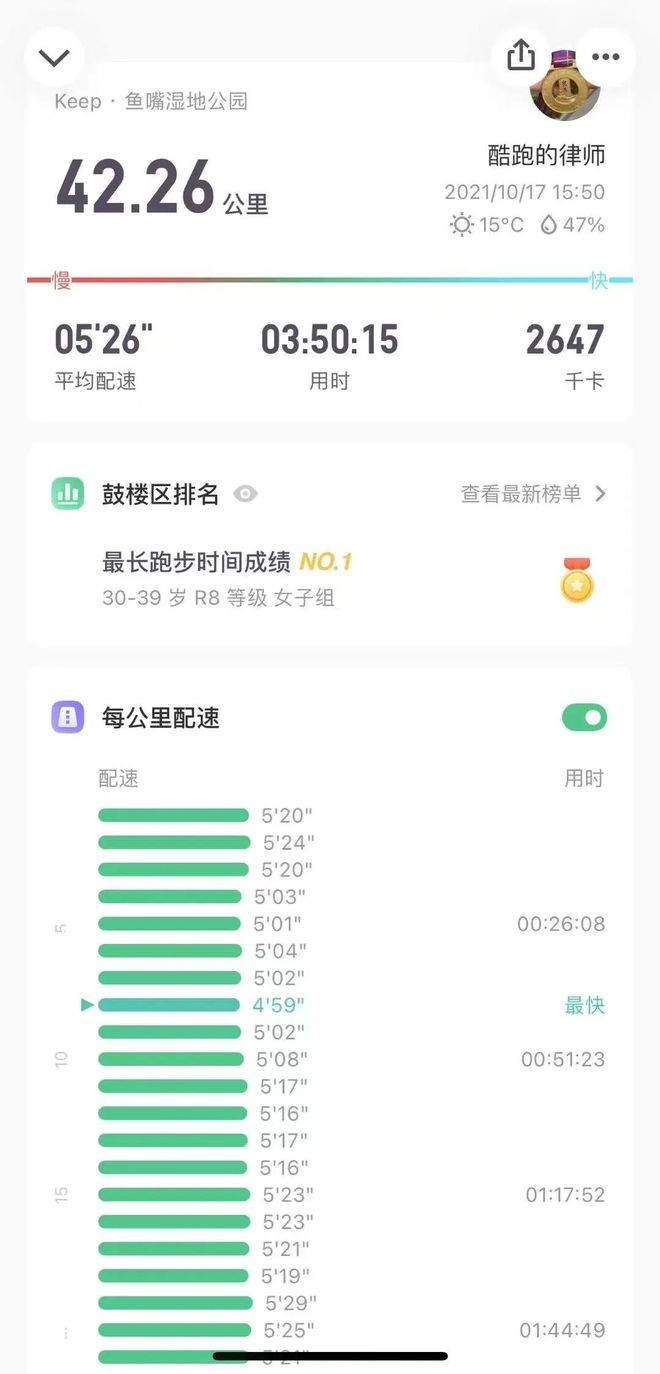 在南京律师圈里,她可能是目前唯一全马破三的女律师。“有同行朋友说,认识我让他们觉得很骄傲。”她很坦然地接受了这份称赞。在她看来,这是对她努力最直观的认可。曾有一位客户直言,因为看到她跑马拉松,认为“跑马拉松的人专注、有韧性”,故而将案子交给她很放心。“客户会觉得,一个能在马拉松这样极限挑战中不断突破的人,在处理法律事务时也一定具备同样的韧性和毅力。”