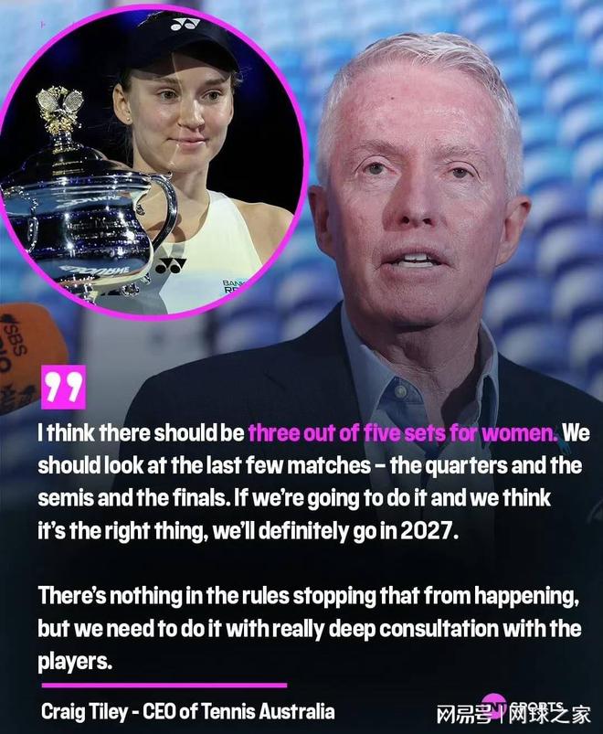 2026年澳大利亚网球公开赛硝烟方散,一项可能改变女子网球历史的提议已浮出水面。澳网赛事总监泰利近日公开表示,正在考虑从2027年开始,将女子单打比赛后期阶段改为与男子相同的
