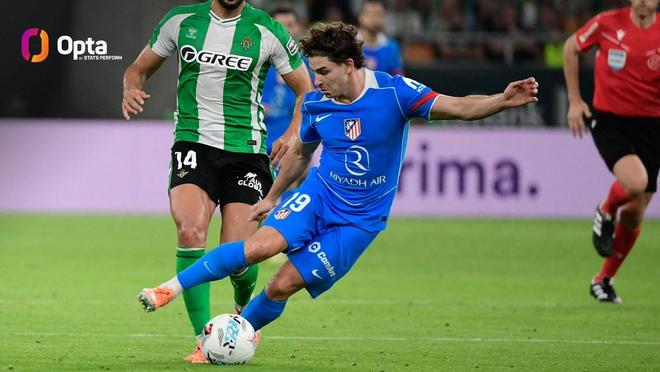 北京时间10月28日,马德里竞技在西甲第10轮的比赛中客场2-0击败了皇家贝蒂斯,胡利安-阿尔瓦雷斯在上半场结束前助攻巴埃纳打进了本队的第二粒进球。赛后根据Opta的统计,自去年夏