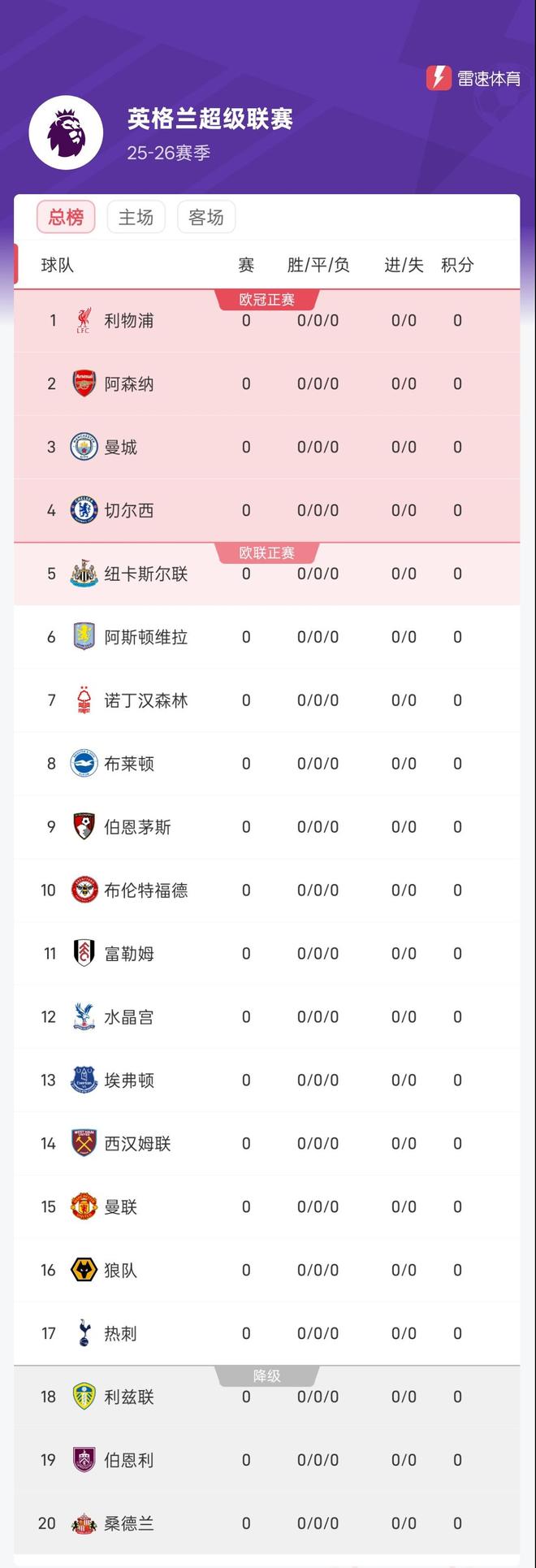 2526赛季英超联赛明日凌晨拉开大幕,预测冠军得主赢雷速好礼!