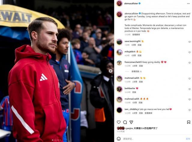 麦卡利斯特也在社媒发文鼓励球队,写道:“这是令人失望的下午,现在是时候反思、休息并在周中再次出发。赛季还很漫长,所以我们要保持积极的心态,并努力争取胜利!”
