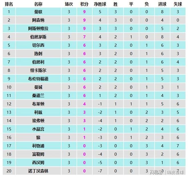 10月,只有曼联、阿森纳和阿斯顿维拉取得三连胜,净胜球给人印象往往是负数的曼联,却凭借净胜球的优势,排在单月的英超第一名。卫冕冠军利物浦,跟富勒姆、西汉姆和诺丁汉森林一起,是4支三场全败的球队,利物浦排名直线下滑,西汉姆和诺丁汉森林换帅后,仍未取得联赛首胜。