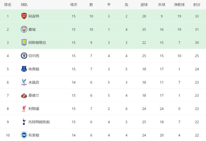 - 北京时间12月7日凌晨,英超第15轮结束了多场比赛,阿森纳客场1-2遭维拉绝杀,曼城主场3-0大胜桑德兰,切尔西客场0-0...发表于: 12-07 09:20